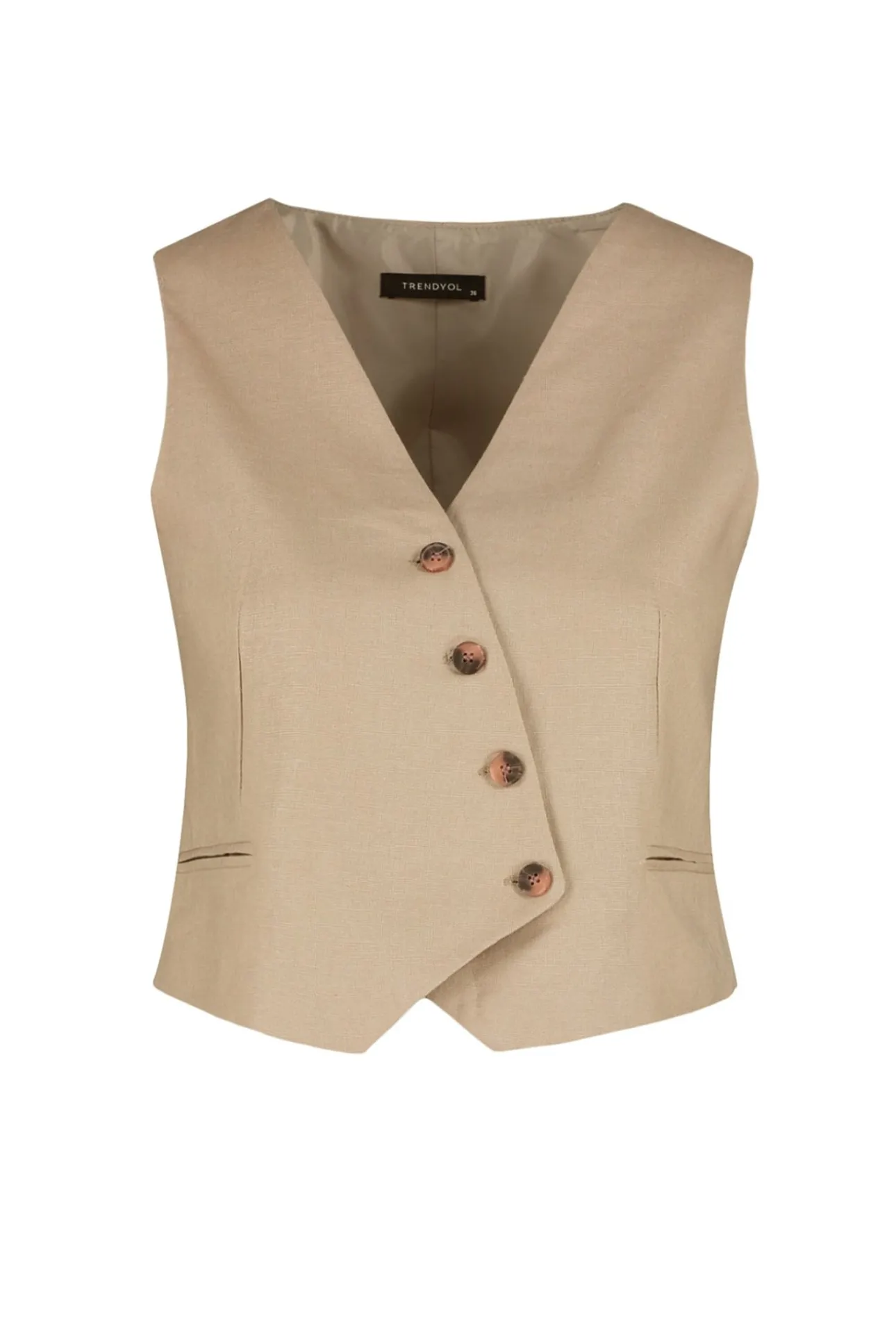 Chaleco básico de corte regular, 100% algodón, sin mangas y con cuello en pico.
