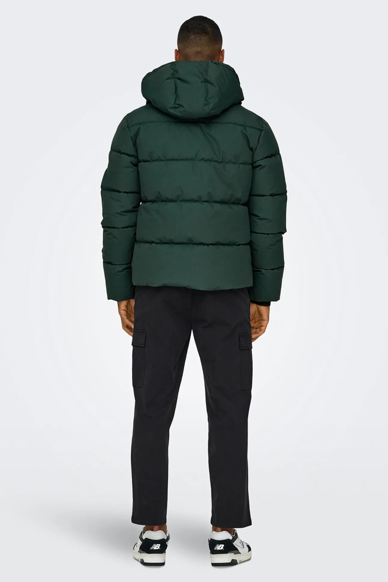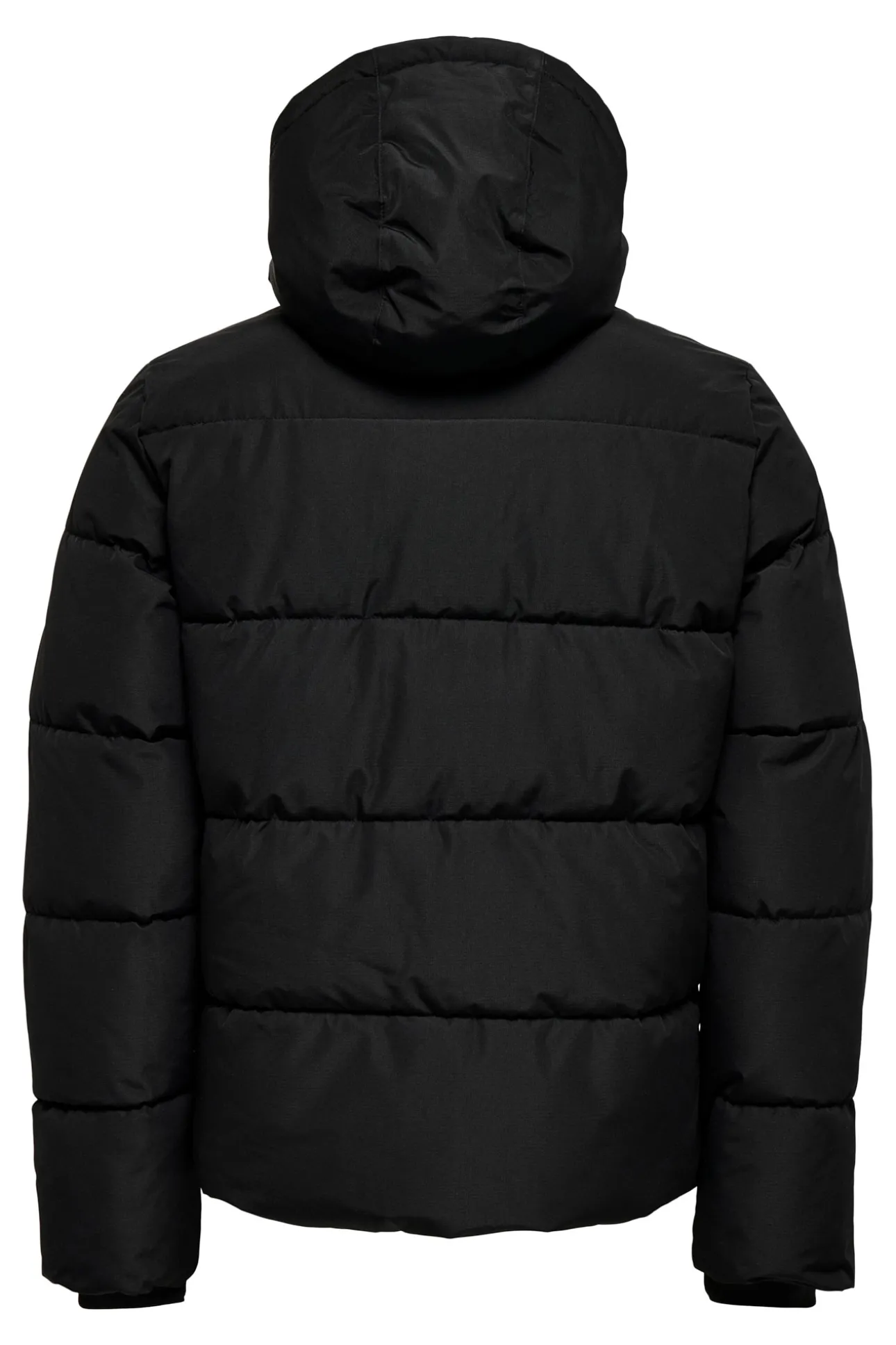 – Manga larga, capucha ajustable con cordón, cierre de cremallera frontal, puños elásticos, bolsillos frontales con solapas y bolsillos laterales .