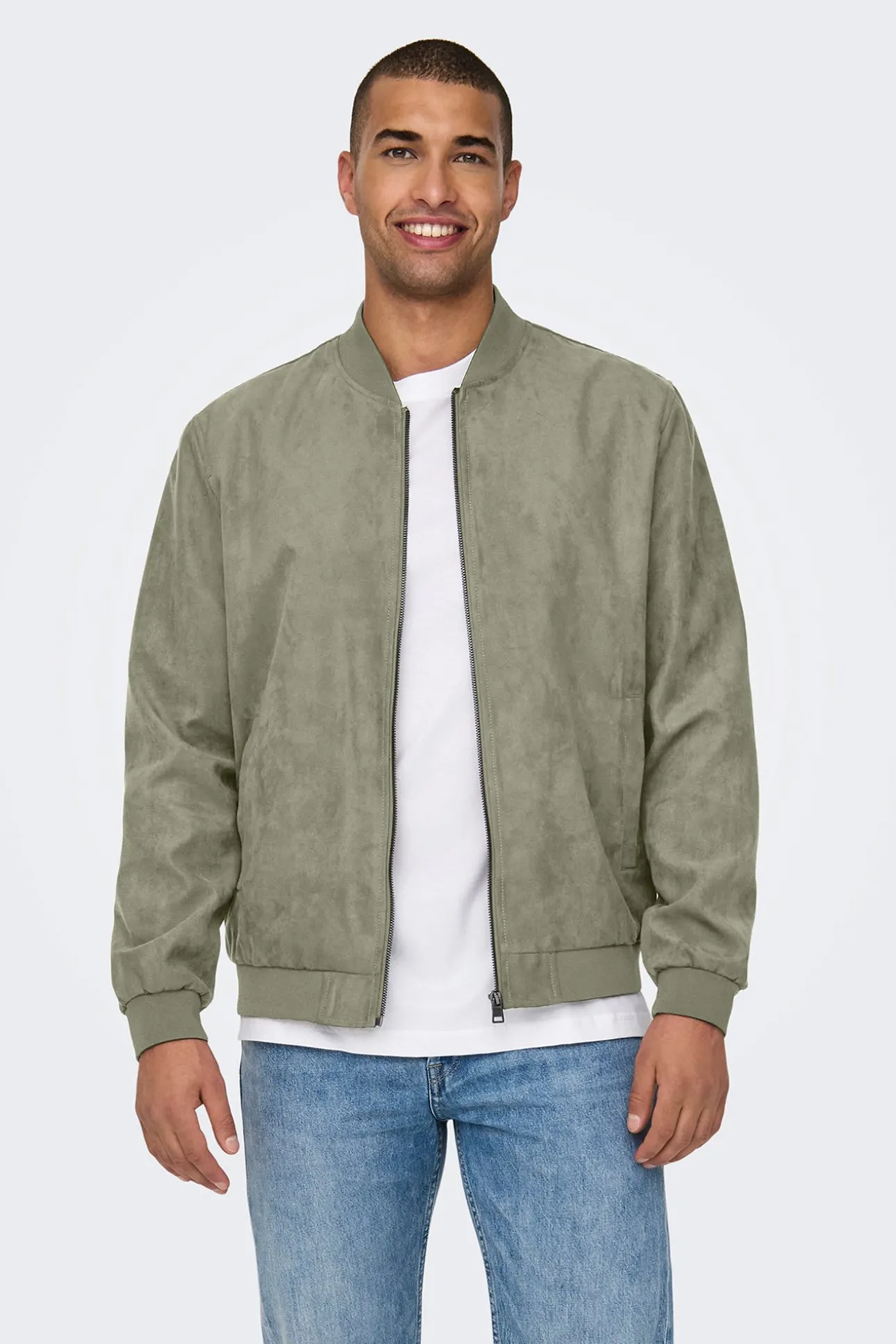 – Corte regular, cuello mao, cierre de cremallera frontal, bolsillos laterales y patente elástica en cuello, puños y bajo.