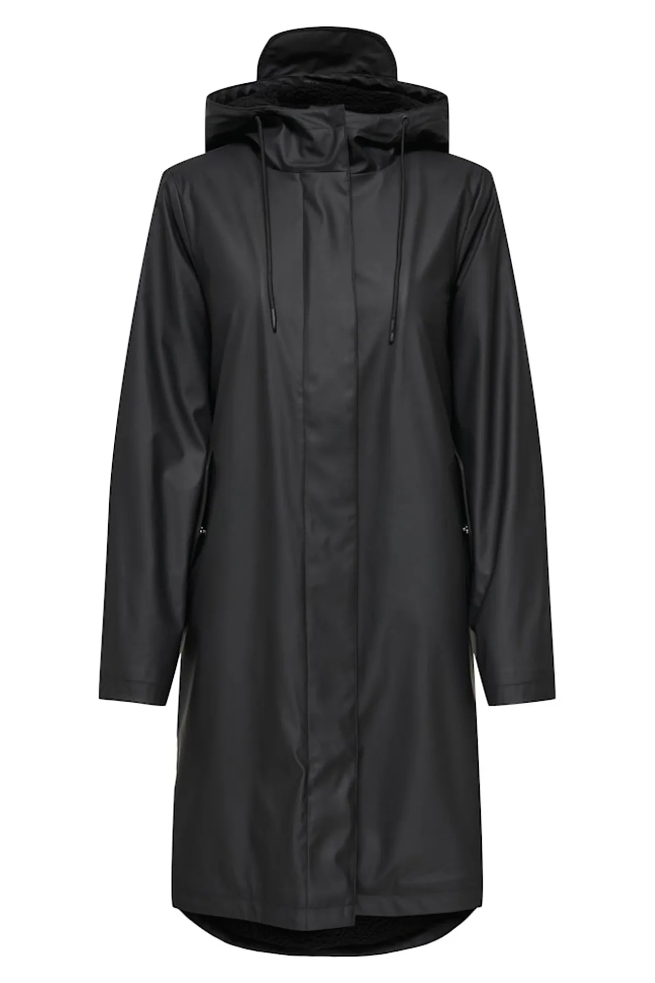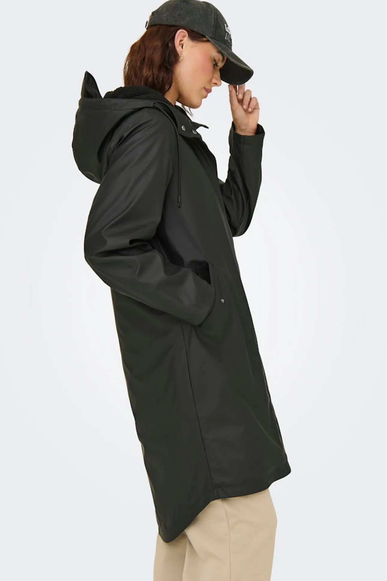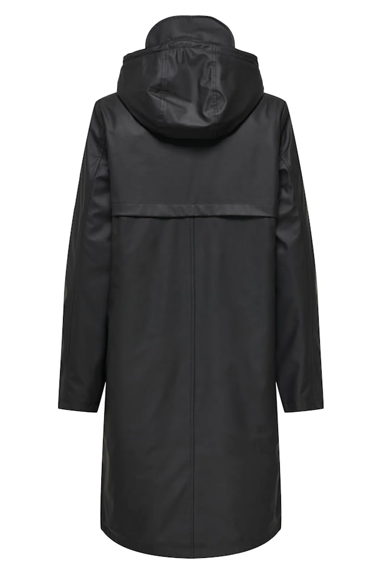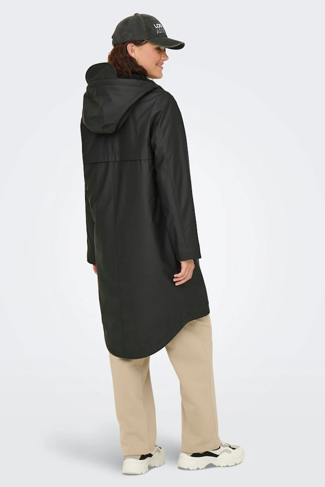 – Cuello alto con capucha ajustable incorporable.