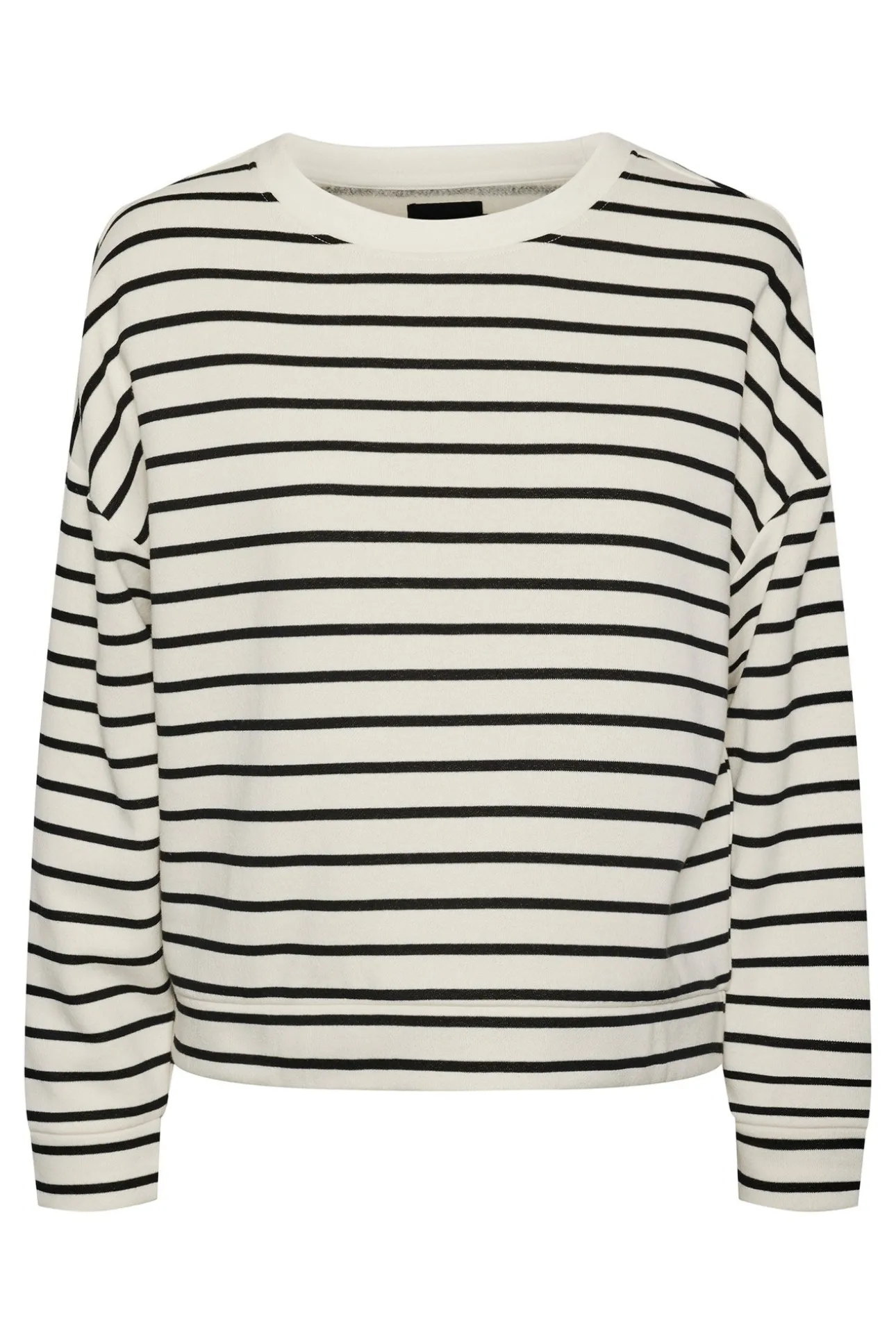 Cotton sweatshirt with striped print. Closed collar and long sleeves. Soft texture.