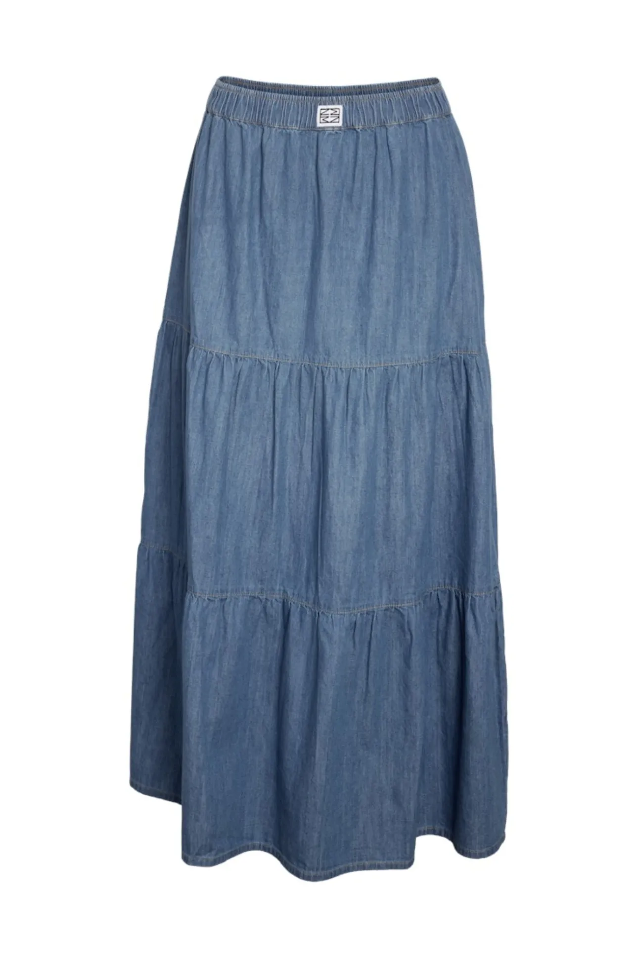 Falda larga vaquera ligera con paneles
