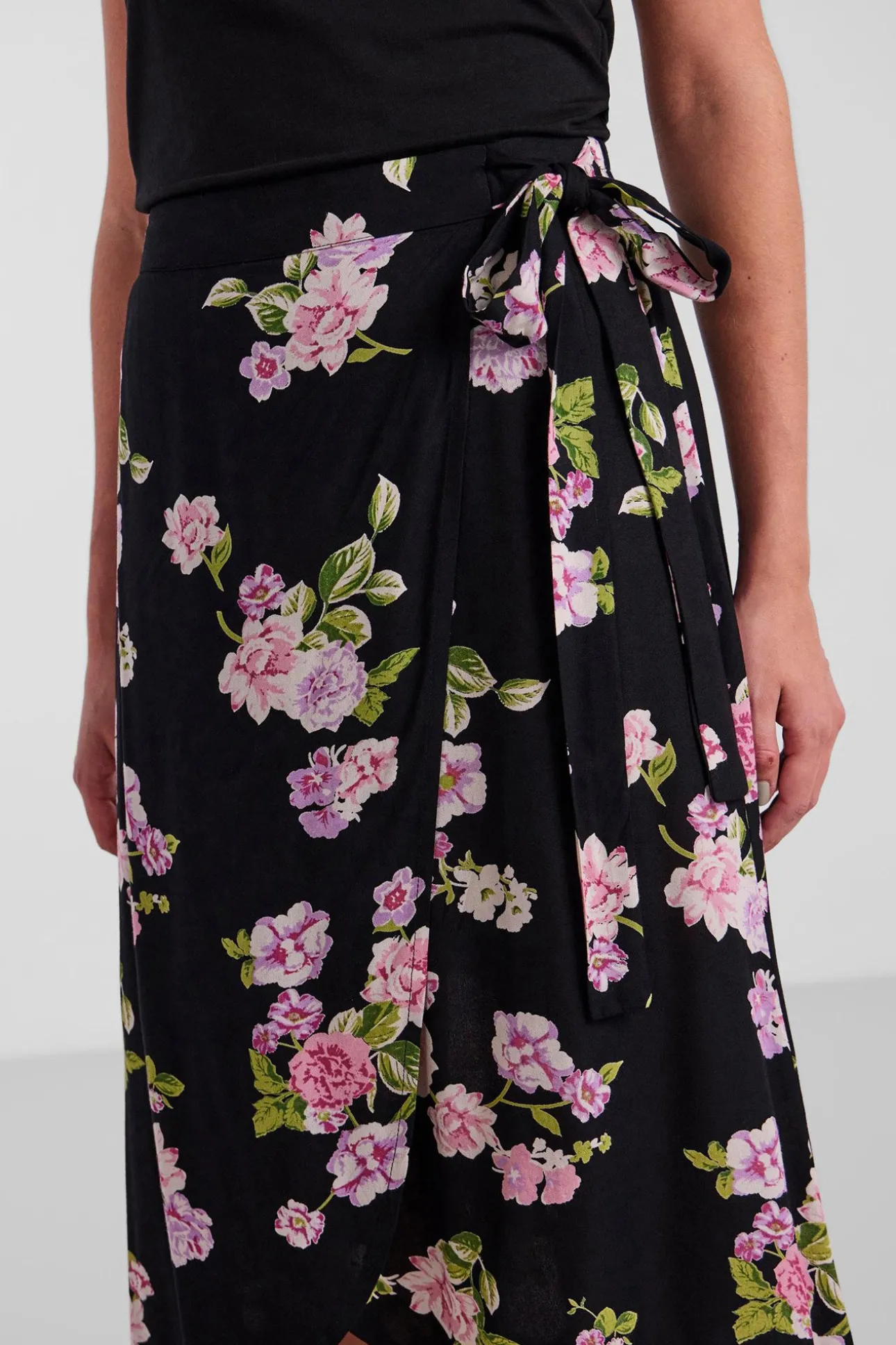 Falda midi cruzada con lazada