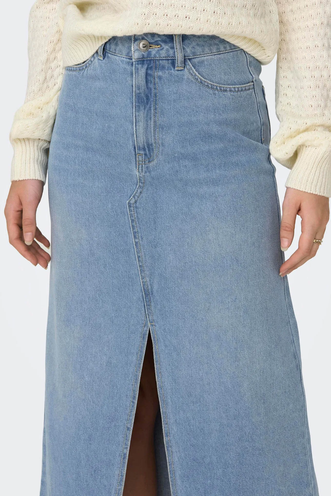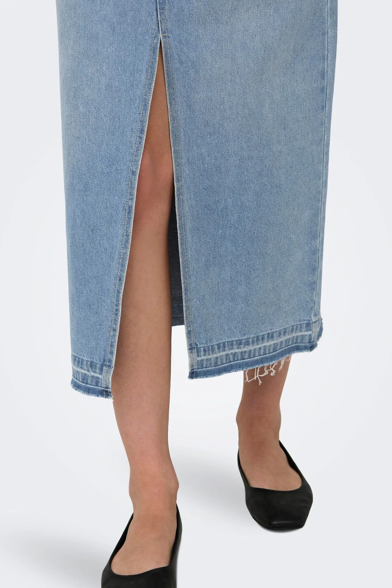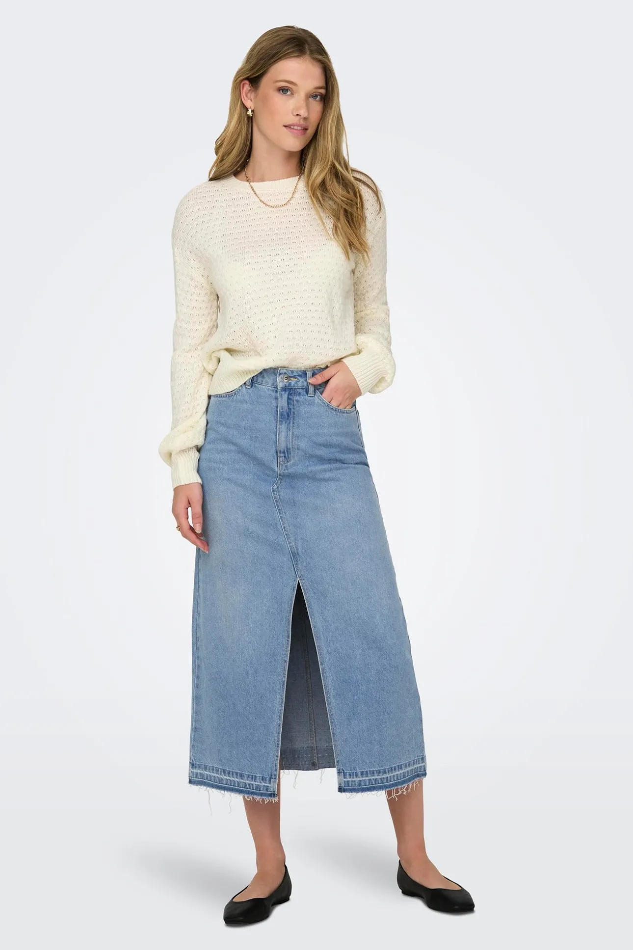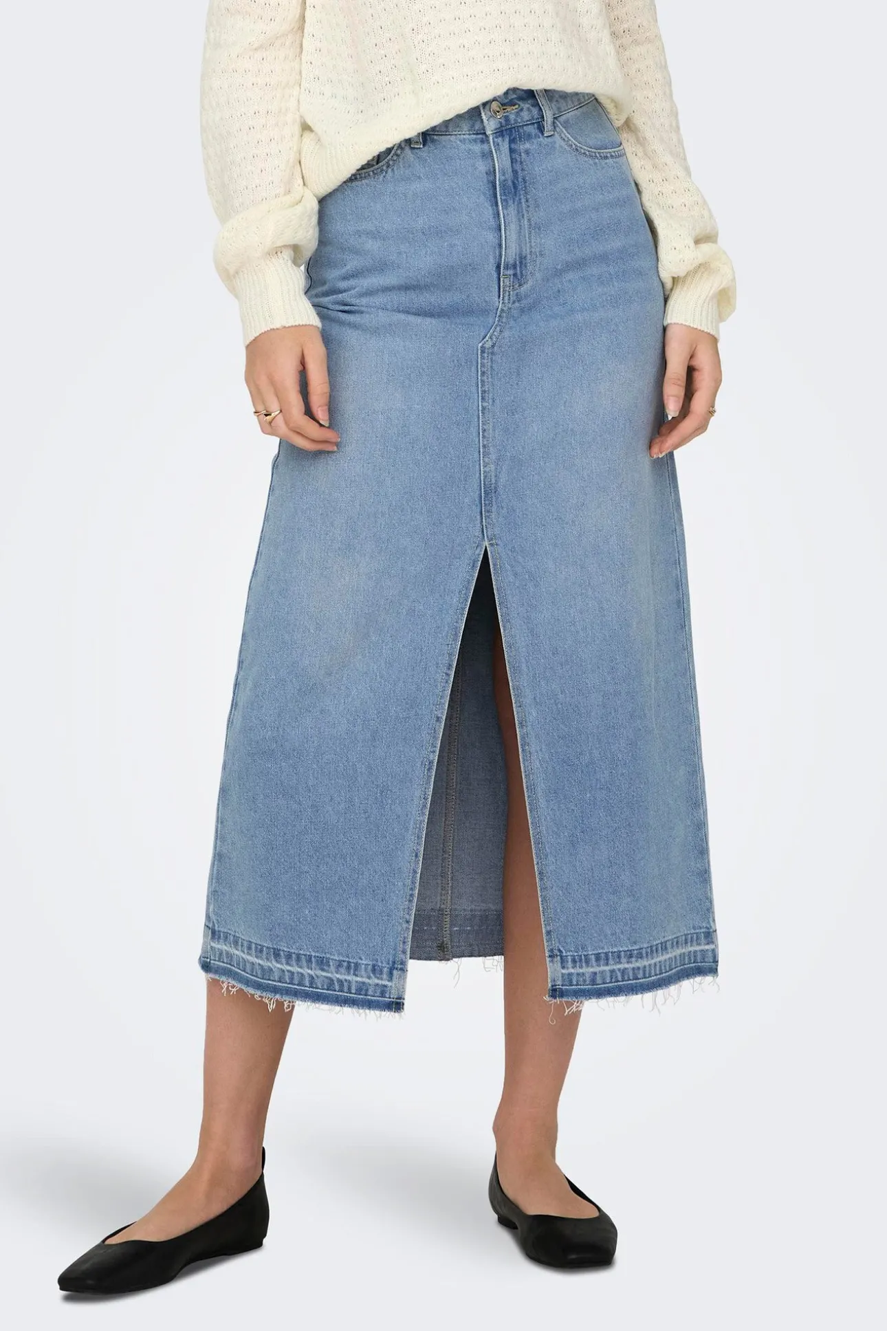 Falda vaquera larga con apertura frontal