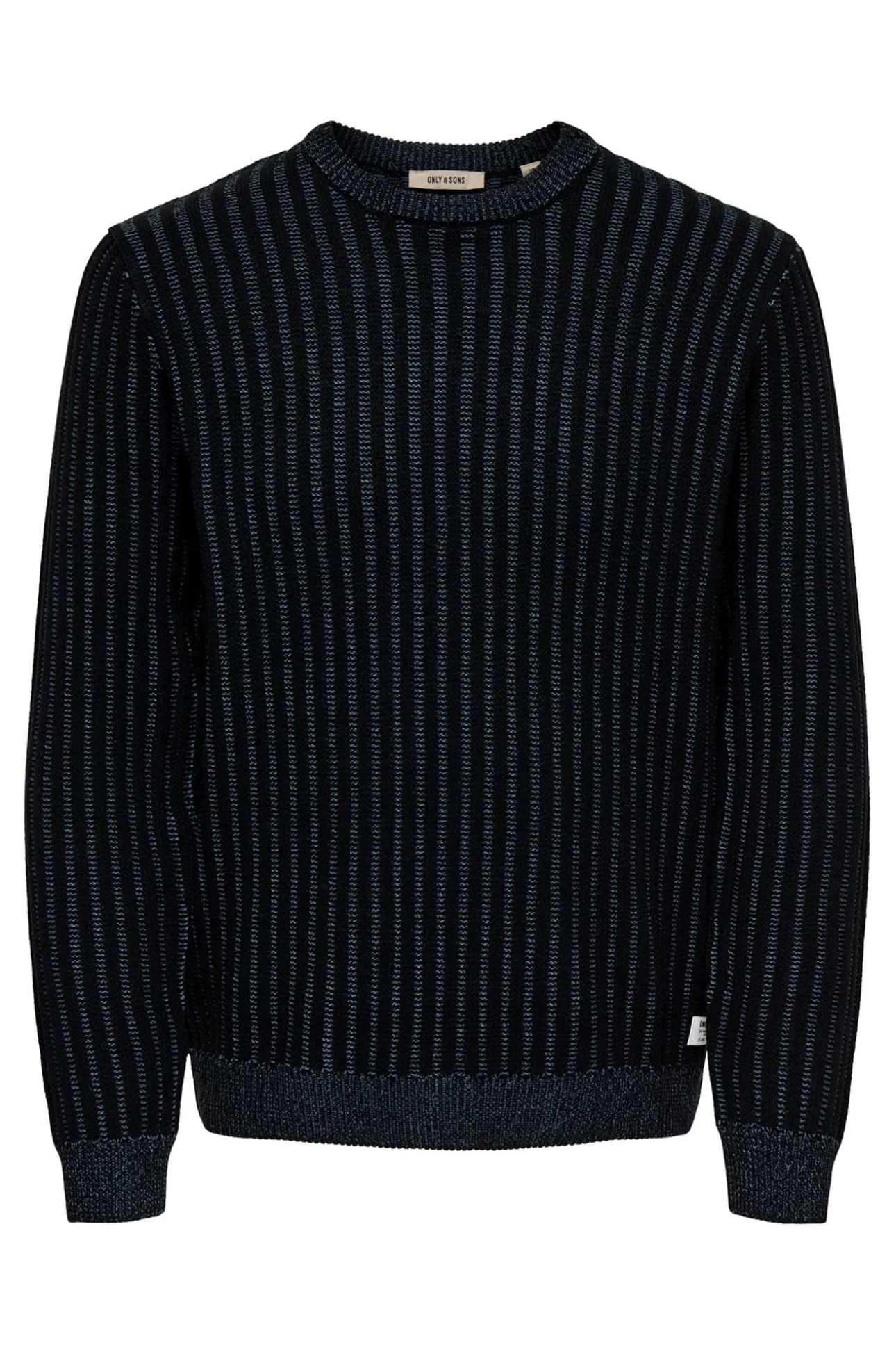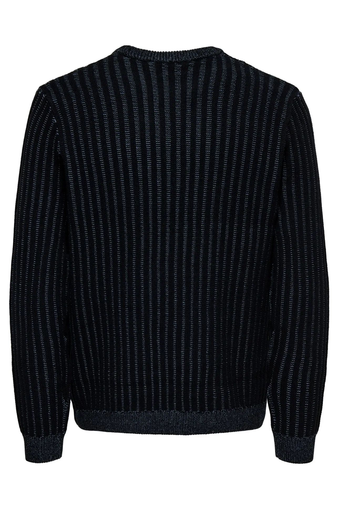 – Corte regular, manga larga y patrón acanalado vertical.