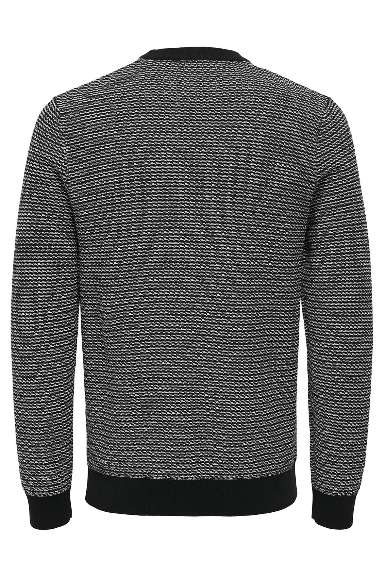 – 100% Algodón.- Corte regular, manga larga y cuello, puños y bajo en canalé.