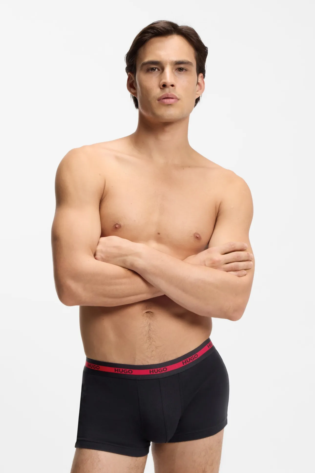 – Cintura con logos repetidos en rojo.