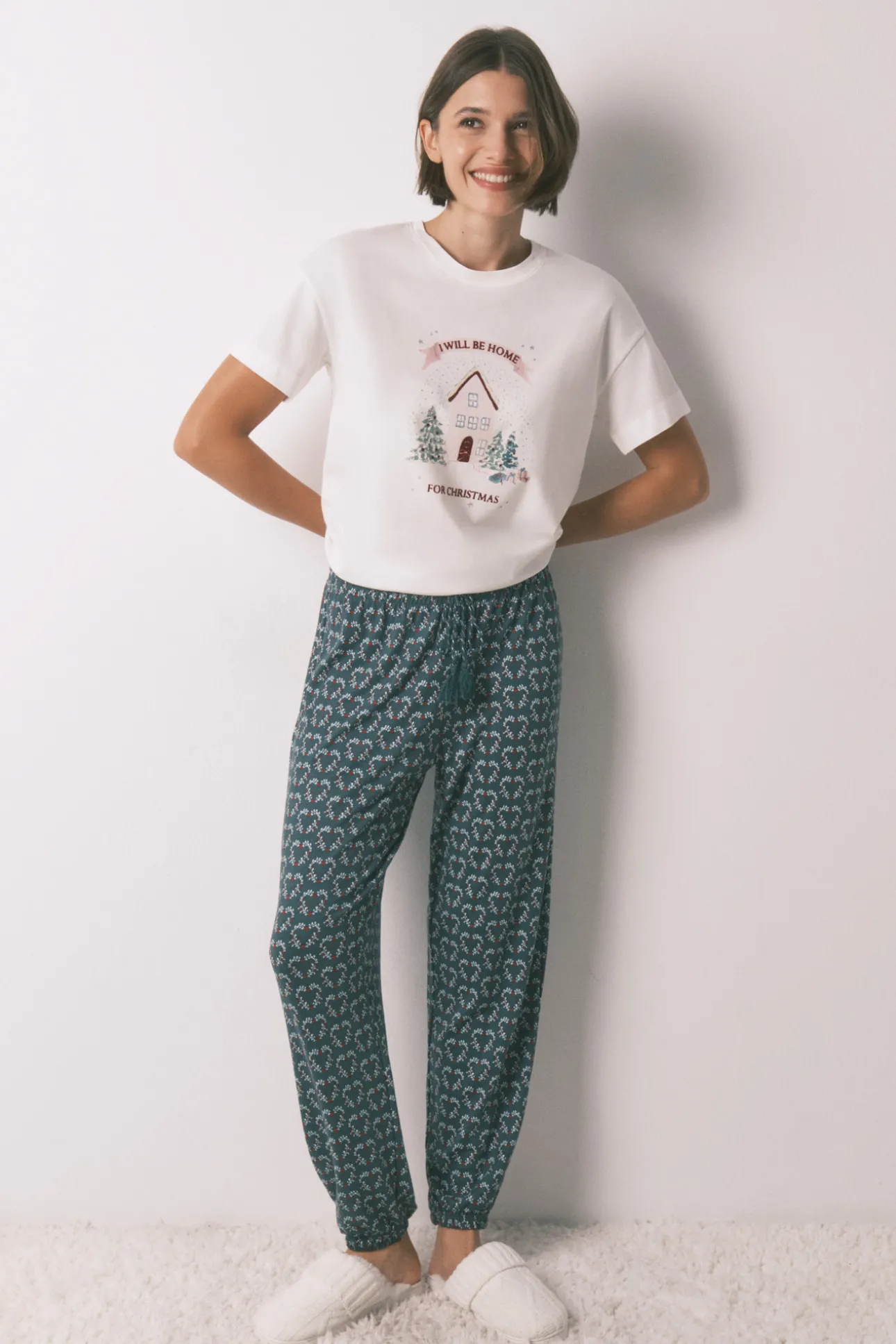 – Con cinturilla elástica ajustable mediante cordón con borlas y frunce elástico en el bajo.