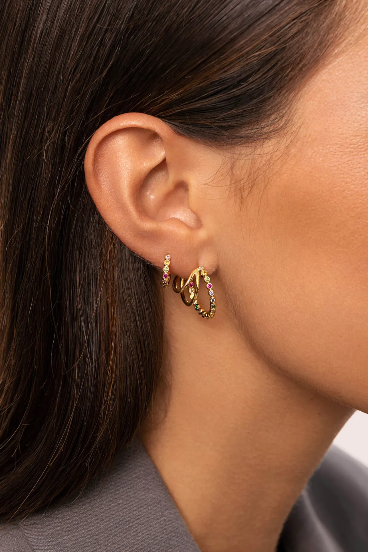 El pendiente suelto Aro Orbit bañado en Oro de 18kt es un piercing de círculos de cristales de colores perfecto para añadir un toque de color a tu ear-look. ✨