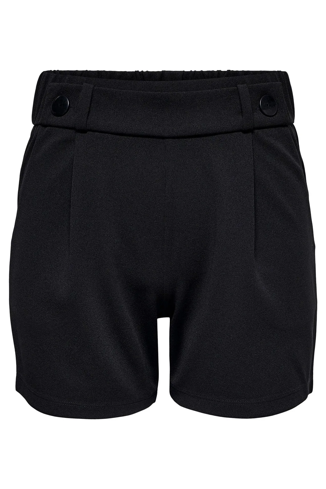 – Tiro alto, cintura elástica con botones decorativos, bolsillos laterales y pinzas frontales.
