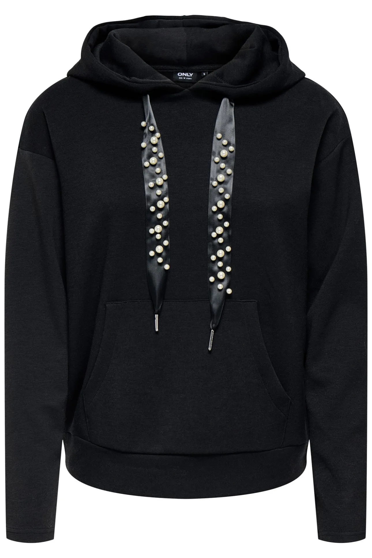 – Capucha ajustable mediante cordones con detalle de apliques.