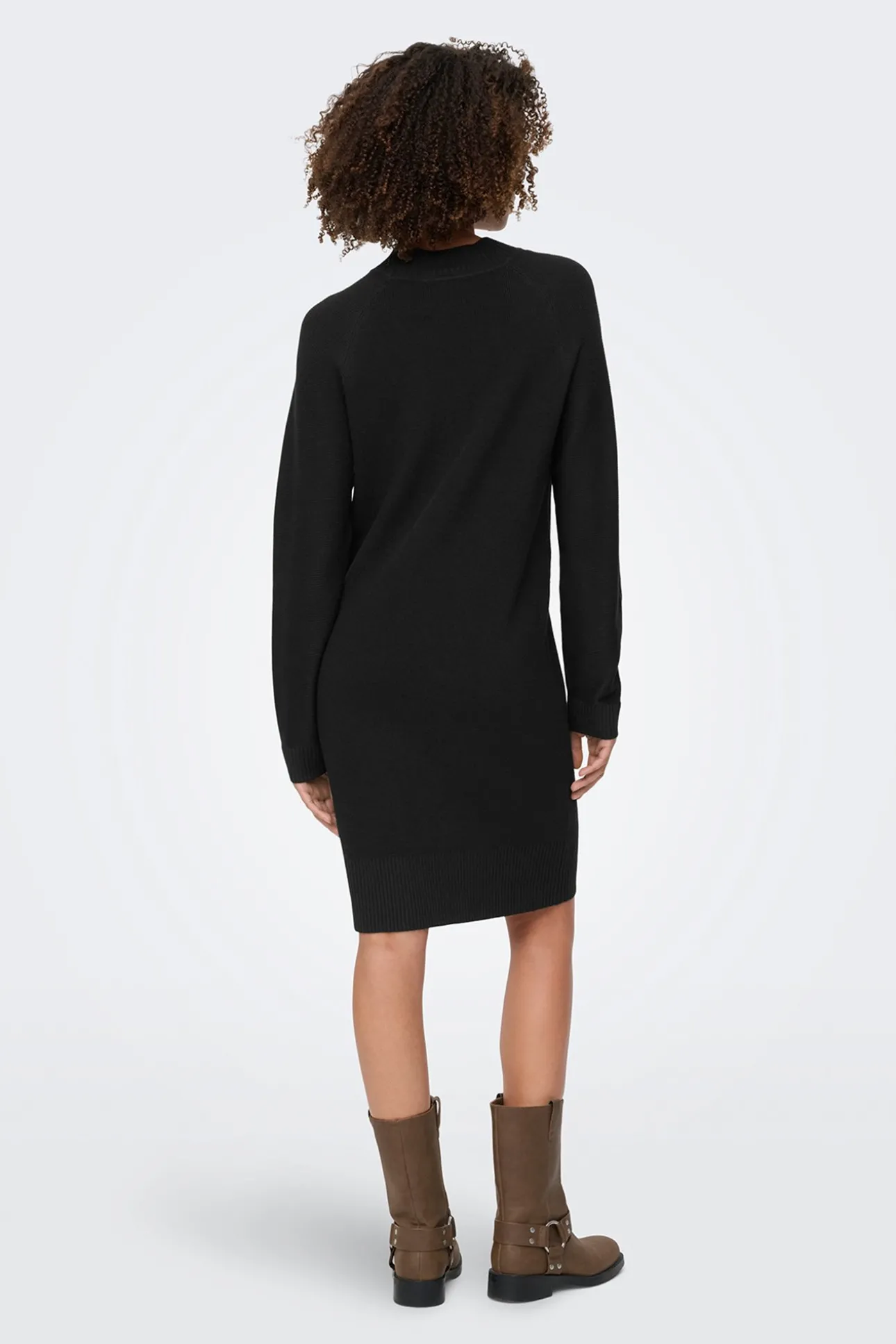 – Corte recto, manga larga y cuello perkins.