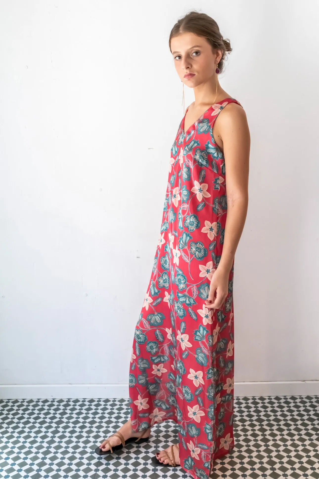 Vestido largo escote pico