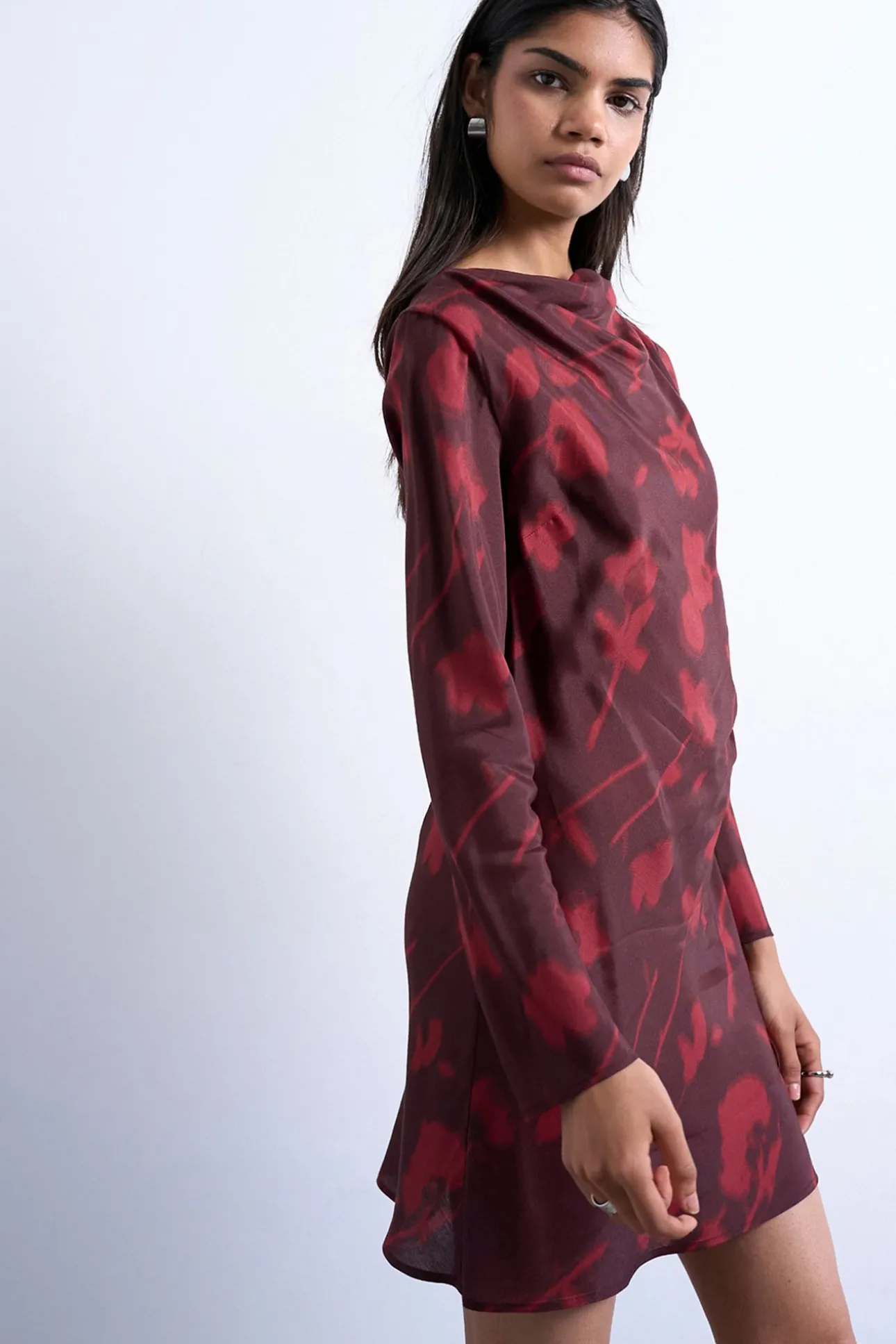 Vestido mini de viscosa de manga larga